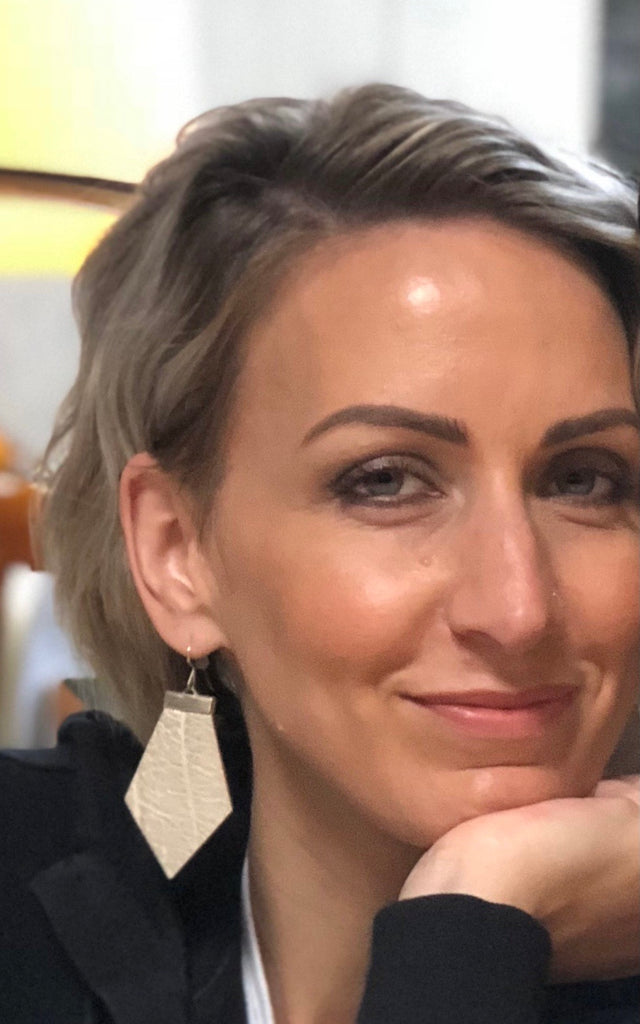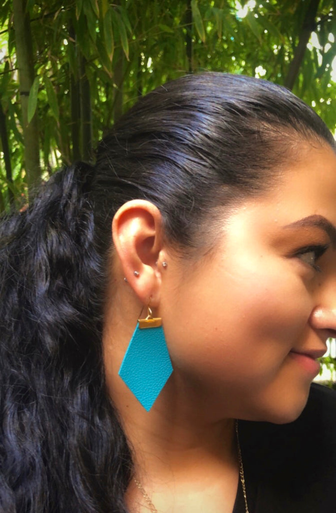Back of earrings are lined with black leather for durability and structure