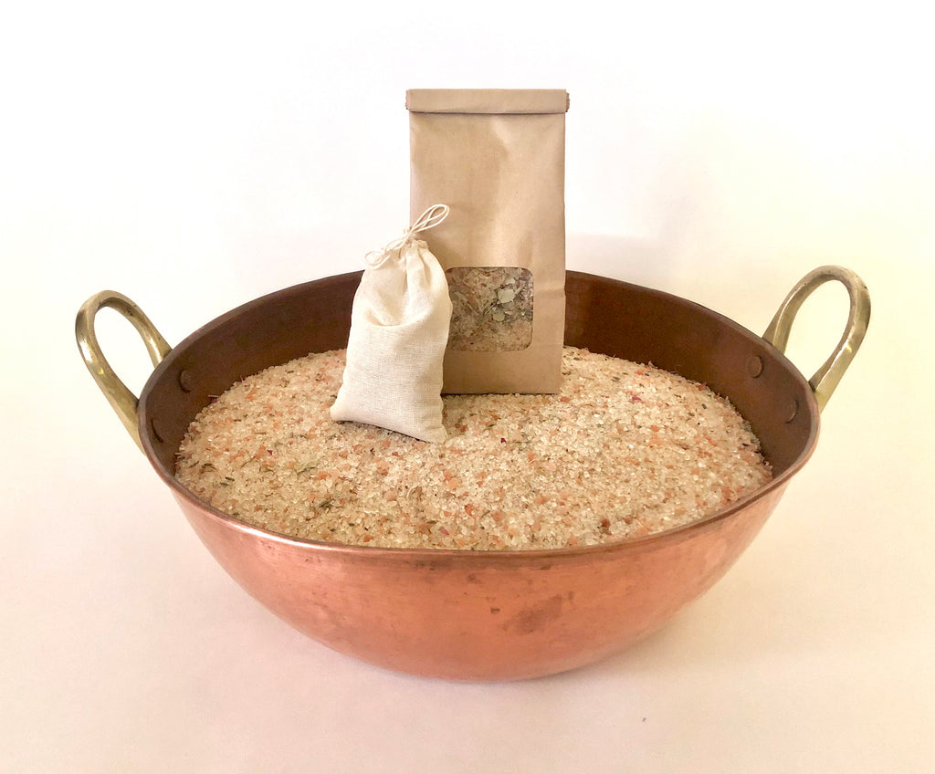 Made with muscle relaxing sea salts and a soothing blend of scents to help you unwind. You'll get 1lb of this blend along with a reusable muslin bag to help contain the ingredients. Just drop it in your bath water and let the mixture work its magic.